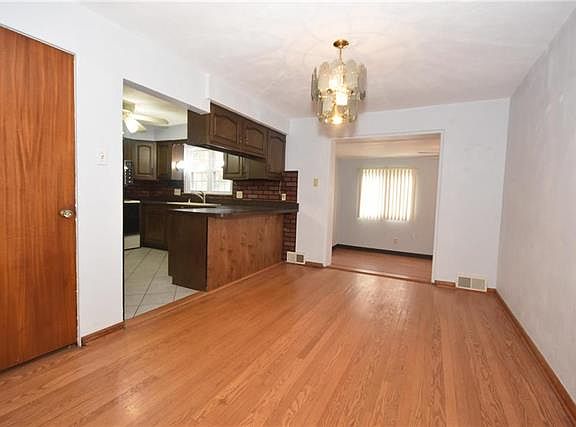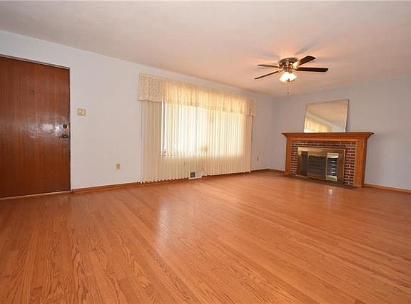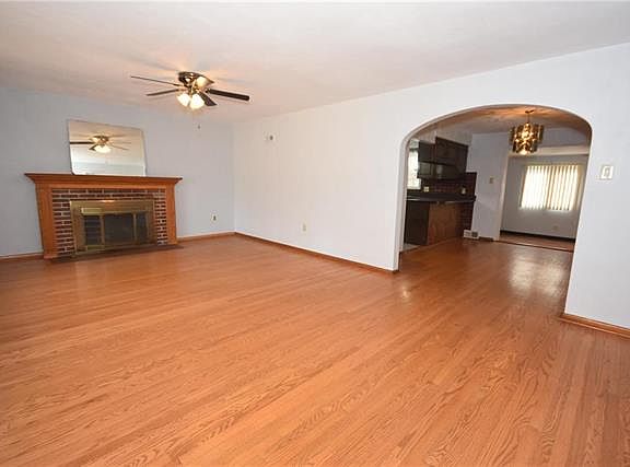 Brick ranch with full basement is ready for a new owner! Large LIV RM boasts gas fireplace, sunny bay window and arched doorway. You will LOVE the gleaming, beautifully refinished hardwood floors throughout this home! Nice DIN RM open to KIT boasting an abundance of cabinets, refrigerator, electric stove and breakfast bar w/overhang for stools. Nice-sized BRs including master with two closets. Bonus FAM RM off back of house with door to large back yard! Full basement offers plenty of space along with 3/4 bath and large laundry area w/workbench and deep sink. Attached two-car garage (22x21). A great place to call home! HMS HPP offered by seller.