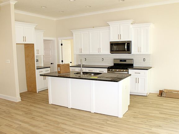 New one level BRICK home with open floor plan, luxury vinyl plank flooring, granite counters throughout, gas self-cleaning range, white shaker cabinets, NO CARPET, ELECTRIC fireplace; covered patio, double enclosed garage, tree lined lot. Primary suite features soaking tub, separate shower, double granite vanities, commode room & large walk in closet. Don’t miss this one, ready for occupancy before loan can close