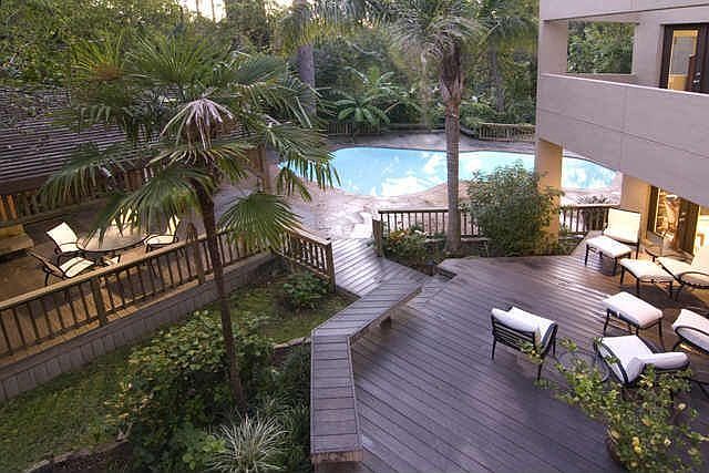 Rarely available bayou-front contemporary in Sandalwood! Walls of glass bring the outdoors in! Formals overlook the large pool & expansive back yard, Galley kitchen w/granite, stainless appliances attached to breakfast/family rooms. Study w/full bath down. Master w/tree top views features marble bath & private balcony. Travertine & hardwood floors add sophistication to this extensively updated, unique home. Gameroom over three-car garage adds 954 sq.ft. w/full bath for pool use!