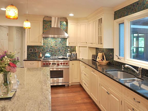 Five bedroom, 4 bath tudor style colonial on a desirable tree lined cul-de-sac. Rooms are large. Completely renovated with gourmet dream kitchen, living room with impressive stone fireplace and custom built-ins. Home office with built-in cabinetry and oversized windows overlooking landscaped koi pond with waterfall. Four season sun-filled porch room. Easy commute to NYC, top rated schools, ranked 13th in Money Magazine's Best Places to Live" in US.