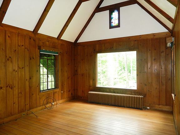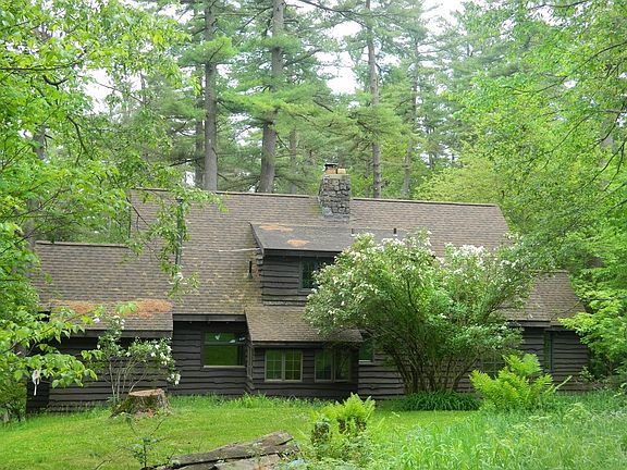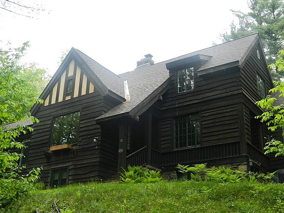 Perched on a hillside in "The Pines" with view of Moody Pond and deeded owned access for summer water sports. Walk to hike Baker Mountain in the fall and ski to Jack Rabbit trail in winter. Designed by Distin with Tudor motif and cathedral ceilings. Don't miss the hand painted fairy tale mural in the nursery off the massive master bedroom. Heat with oil, wood, or coal. Quiet and secluded Adirondack location with deer in your yard.
