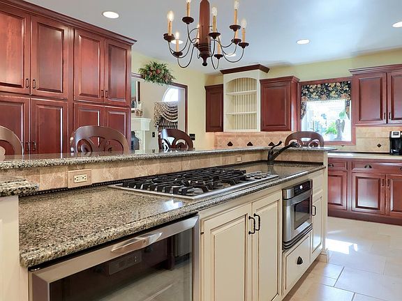 Rare opportunity to own this "entertainer's" dream home ! Pride of ownership shows in this lovingly and meticulously maintained and upgraded home. Enjoy the huge 33'x15' custom kitchen featuring an 11' bar height center island, a second 6' counter height breakfast bar area, and an 8' beverage bar. Professional series appliances include a KitchenAid double oven with warming drawer, compressor refrigerator, and a Jenn-Air gas range. Lots of recessed lighting and warm radiant heat in the tile floor make this an inviting space. The dining room features a vaulted ceiling, 12 light chandelier, sunburst windows, and a custom made mantle and gas fireplace that matches the kitchen. The lower level is finished and has a separate room that could be used as an office. Outside you will find extensive hardscaping with built-in lighting in the fenced-in rear yard, including a 6' diameter custom firepit with built-in seating. Relax on the large 13'x25' deck with 13'x15' awning or hang out in the screened-in 13'x23' porch. (The current owner had custom "greenhouse" panels made to extend the seasonal use of the porch). There is also a large gazebo with electric and an oversized shed. Currently, the home is laid out with 2 Primary bedrooms on the 2nd level but can easily be converted back to a 3 or 4 bedroom home.