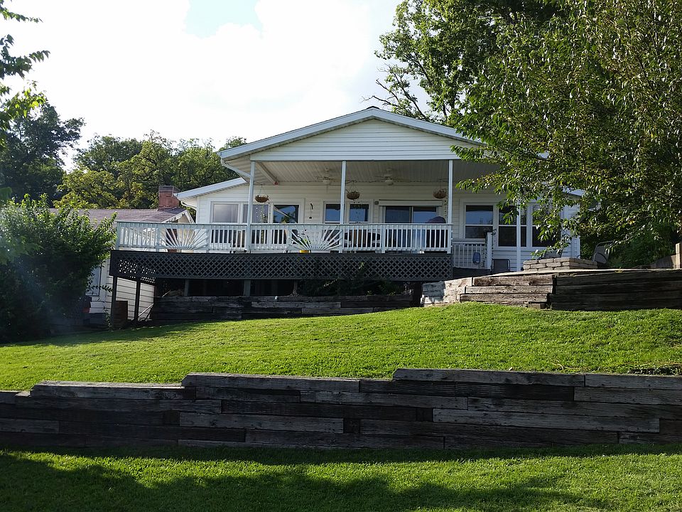 • FeaturesExterior: Large Trees, Porch, Deck, Level, Patio, Lake Access, Lakeview, Dock, Terraced