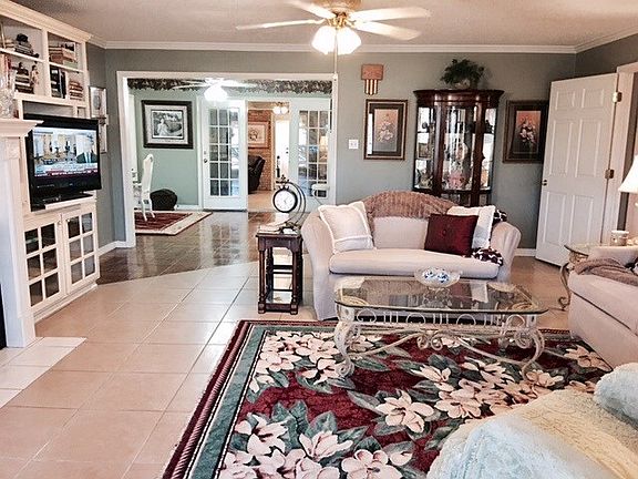 This beautiful country home on almost 6 acres has much to offer!! Surrounded by mature oak trees and only 5 minutes from town, this home is perfect for many! There are several bonus rooms that could double as a third bedroom. Master bedroom and bath are huge! Screened front porch and there is also covered back patio. Don't forget the barn with over 3000 sq ft under beam which is plumbed and wired.
