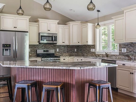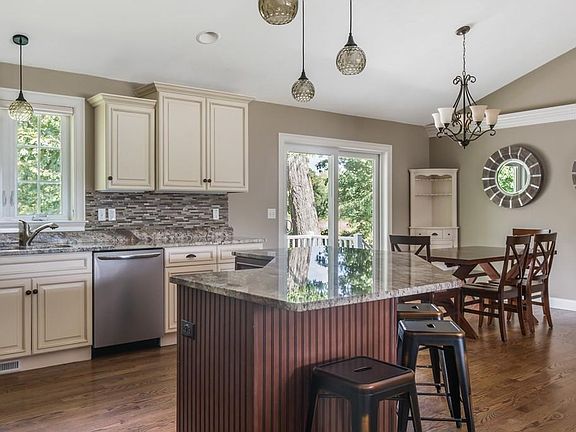 Stunning Custom Ranch w/ Water views nestled on a cul-de-sac featuring; Well thought out open concept living! Gourmet kitchen w/ plenty of storage, oversized island, Stainless steel appliances, tile back splash, opens to dining room w/ crown molding & family room w/ gas fireplace. Cathedral Ceilings and an abundance of windows maximizing the sunlight & tranquil water views. Perfectly designed, the private master suite is located on one side of the home w/ large walk-in closet , additional large closet, spa bath w/ custom tile shower, glass doors, double sink & vanity. The 2 additional bedrooms share a wing on the opposite side of the home w/ Main Bath. Central Air, Central Vac, 1st floor Laundry, Hardwoods though-out, TOWN WATER, SEWER, GAS! Walking distance to the new Highland Park. Sprinklers, Sidewalks, Underground utilities, PLUS a Walk out Basement for plenty of storage or future expansion.