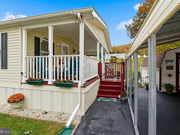 Beautiful and well-maintained 3 bedroom/2 full bath mobile home. Plenty of room to park in the attached, recently resealed driveway under the carport. The home has a lovely, covered side porch that overlooks a small patio area, storage shed, and adorably fenced in are ( fence conveys!) - perfect for your small dog! You will find numerous things to love about the layout, such as the breakfast bar, the generously sized primary bedroom, and the separate laundry room with an outside access door. Pride of ownership is apparent throughout the home. Come out and see for yourself!