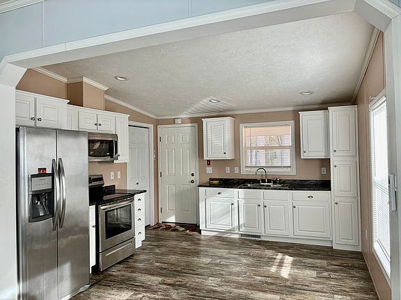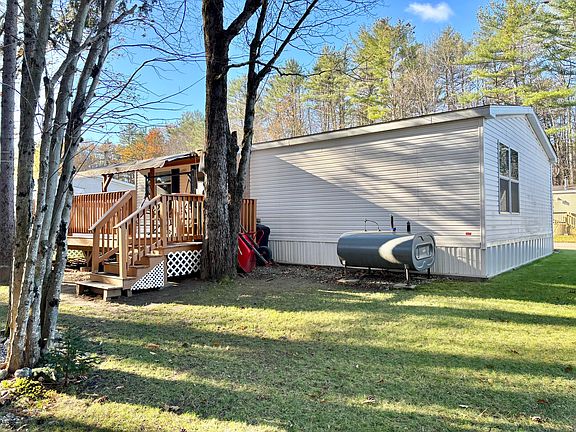 This adorable 2018 Clayton doublewide manufactured home is 28'X38' and located in desirable Grimmel's Mobile Home Park. Open concept with south facing front windows for sunny winter afternoons. Living and bedrooms have vaulted ceilings for that spacious feel, newer carpeting in bedrooms, living room and hall. Large bathroom with walk-in shower and entrance to primary bedroom. Both bedrooms have large walk-in closets. Heat/Air pump is whisper quiet, 12'X16' deck with remote control awning, heavy duty storm doors on front and back doors. Large level well manicured lot, shed with electric and perfect for a hobby shop, paved driveway. Minutes from Beaver park which is a 300 acre park with fishing, trails ect. Easy commute to I-295 in Topsham or I-95 Lewiston. Low monthly lot rent of $320.