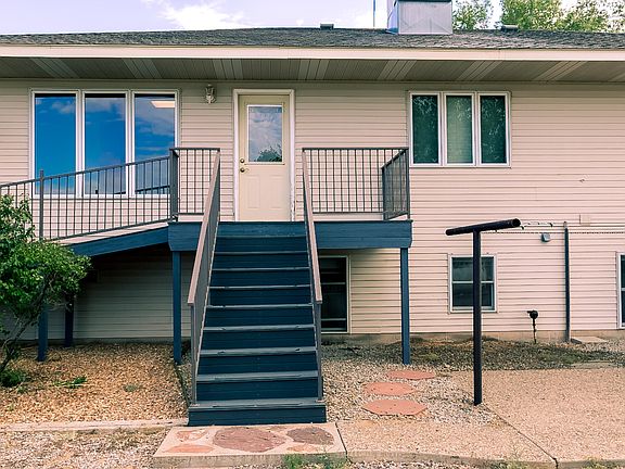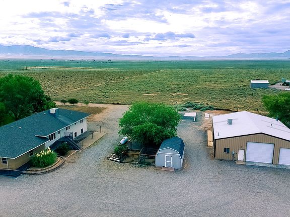 5-acre split-level property with residence, workshop, and agricultural improvements.Upstairs includes a kitchen with vinyl flooring, food prep area, walk-in pantry, oak cabinetry, and large dining area. Spacious family room with large windows w/mountain views, primary bedroom w/ full bath, secondary bedroom, & large laundry w/wash sink, office space & additional full bath. Downstairs includes 2nd kitchen, dining area, three bedrooms, full bath w/ dbl sinks & tub/shower combo, second living area & storage room. Amenities include central vacuum system, Pella thermal double-pane casement wood windows, hot water baseboard radiant heat w/ four zones, & MasterCool evap AC. Roof is pitched asphalt shingle; exterior is vinyl siding w/stucco accents.