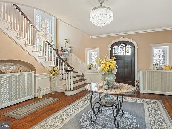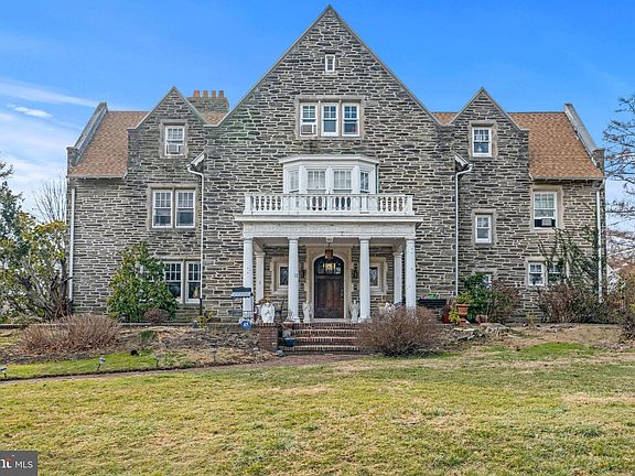 The search stops now.! This gracious 1910 English stone colonial has tremendous architectural details. Located in prestigious Latham Park, this 5169 square foot Wissahickon schist estate property is sited on a large double-lot of over 1 acre of level & open ground. A rear entry (gated) drive takes you to the detached 2-car carriage house while ample street parking is available out front. Brick walkways lead up to the covered front porch. The original double-hung windows have limestone trim and there are original wrought iron light fixtures that grace the front entry. There are leaded glass sidelights and also in the over-sized, arched front door. The central entry hall is larger than most living rooms (20' x 17') with a corresponding large 2nd floor landing. The sprawling staircase is located in the corner with more leaded glass windows, while the other corner houses the powder room. This masterpiece has renovations throughout with a brand new certified roof as well as newly paved driveway. Don't miss your opportunity to bask in its splendour.