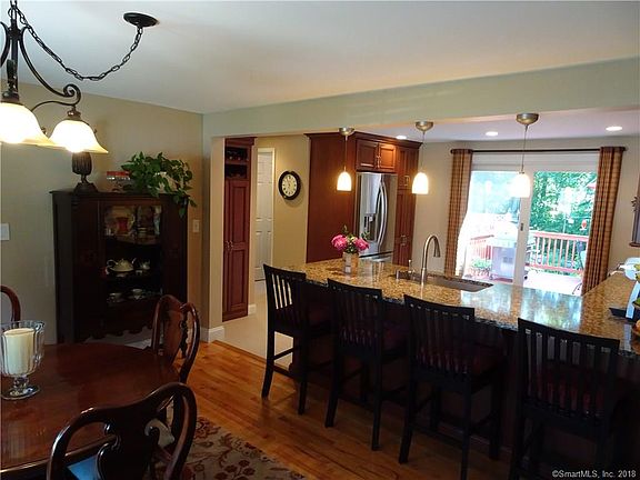 This gorgeous updated colonial will have you smiling from the moment you step inside it's front door. The kitchen and dining room have been opened to enjoy an open concept living space. The kitchen has high end soft close cabinets, quartz counter tops, stainless steel appliances and a gas top range. The house flows from the garage into a mud room, perfect to drop your shoes and coats, but large enough to be a possible home office, play room or reading nook. The large living room boosts a gas log fireplace insert and original hardwood floors. The upstairs has a master suite with walk-in closet, hardwoods and full bath. A walk-in tile shower with side jets and rain water shower head will remind you of an every day spa experience. The large back deck with hot tub off the kitchen is perfect for morning coffee or entertaining. The yard has a shed, fire pit and easy to maintain landscaping. The lower level has a finished bonus space currently used as an exercise room. The home also offers Mitsubishi wall units to enjoy air conditioning in the warmer months and supplemental heat in the winter time to reduce oil bills. This house has it all It's more than move in ready. It's a permanent vacation experience.