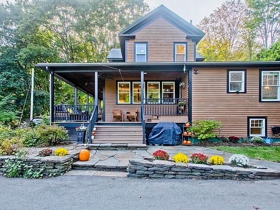Welcome to 12 Lawn Avenue. Over 2 acres of beautiful landscaping and lush woods affording you privacy at the end of a dead end street. Mere steps from downtown, the bikepath,Childs Park,,synagogue,schools,the Y and more! This lovely farmhouse beckons you inside once you step up to the expansive mahogany wrap around porch. Many updates have been done while retaining the feel of an authentic New England farmhouse. Every cook will be excited by the large renovated kitchen with Crow's Foot Mica Schist Goshen Stone countertops,hickory wood cabinets,beautiful appliances and radiant heated tile floor. The large island will be a gathering place for all. Not to be outdone,the living room has a double sided fieldstone fireplace as a centerpiece of the room,and flows into the dining room with its original tin ceiling. The first floor also offers a bedroom and full bath,along with mudroom and laundry. Upstairs you will find the main bedroom with walk in closet,another bedroom,office & full bath.