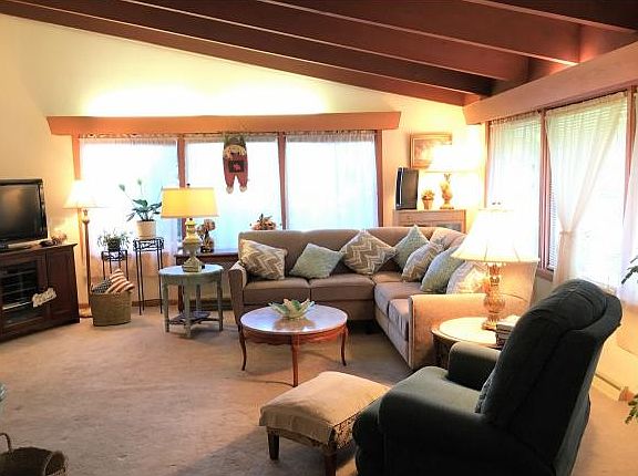 Beautifully maintained contemporary home in Sunrise Terrace. Private and peaceful setting with 4.5 acres. Numerous updates include kitchen, roof, furnace & more. Many windows fill the house with natural light& provide beautiful views. Stone fireplace & Russian fireplace make this home cozy and comfortable. In the lower level enjoy entertaining with a family room & bar area that walks out to patio
