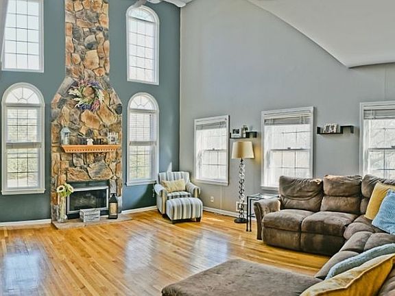 This is the home you have been waiting for in highly desirable Poet's Peak. Grand 2 story foyer with front back staircase gives you an open floor plan with abundant natural light. This home features updated kitchen with granite counters, custom tile back splash, Bosch SS appliances, center island and pantry. The impressive 2 story stone gas fireplace sets the stage for comfort in the large Family Room. Other features of this marvelous home are large rooms sizes, first floor office with french doors, 1st floor laundry, custom crown moldings, large master w soaking tub, W I closet, sitting area overlooking the FR, wood floors throughout and so much storage. The finished basement has room for media room, working and rec room. This is one of the larger homes in Poet's Peak w 3 car garage, flat level lot that backs to woods and great outdoor space on .87 acres. Special Financing Incentives available on this property form SIRVA Mortgage