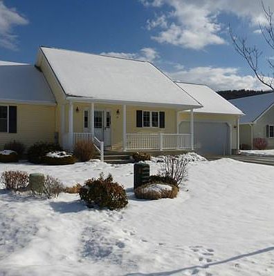 Meticulous one level condominium in well run, established 55 + condo complex in great location, convenient to everything. Nice open floor plan with lots of natural sunlight. Living room with beautiful hardwood floors, gas fireplace, skylight and sliders leading to deck, open to kitchen with island. Two bedrooms including master bedroom with bath and walk-in closet. 2nd bathroom has first floor laundry with stackable washer and dryer. Economical gas heat and central air.