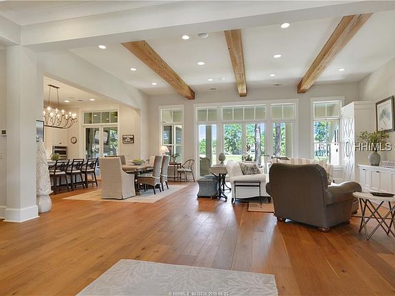Designer furnished home with great views of the 2nd hole of Tom Fazio's highly acclaimed West Course. Screened porch complete with fireplace and TV for almost year round indoor/outdoor living. Chef's kitchen with SS appliances, gas cooktop, and spacious center island. Oiled French Oak flooring throughout the 1st floor. Master down and 2 guest rooms upstairs each with their own bath. Bonus room can be finished for 4th BR is framed and roughed in. Designed by well known architectural firm of Cort Atkins and masterfully built by May River Construction. 2.5 car garage, foam insulation, popular open floor plan, and much more. Home feels like new!