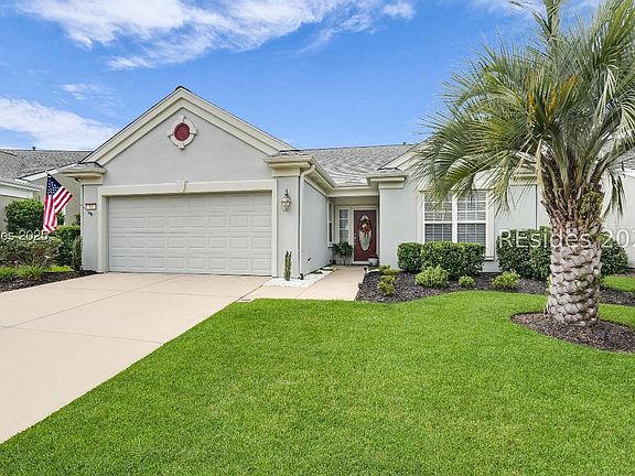 Tucked away at the end of a quiet cul-de-sac in Sun City South, this popular Ibis model offers 3 bedrooms plus an office/flex space, 2 baths, and an extended 2-car garage. Thoughtfully enhanced with over $77,000 in upgrades, the home is move-in ready and designed for both comfort and convenience. Inside, you'll find engineered hardwood flooring in the main living areas, new carpet (2024) in the primary suite, and plantation shutters throughout. The kitchen features a gas range, new refrigerator, granite countertops, custom backsplash, cabinet pull-outs, and a sunny bay window. A French door office with LVP flooring provides a private and versatile space for work or hobbies. The primary suite includes a bay window retreat and an updated bath with quartz dual vanity, soaking tub, and separate shower. Two guest bedrooms, each with ceiling fans and blinds, share an updated bath with quartz, bronze fixtures, and a walk-in shower. Outdoor living shines with two sliders leading to a screened lanai with epoxy flooring, TV hookup, and a paver patio overlooking a private berm. The extended garage with attic storage adds everyday practicality. Residents of Sun City Hilton Head enjoy world-class amenities including 3 golf courses, multiple clubhouses, fitness centers, pickleball, tennis, indoor and outdoor pools, dog parks, walking trails, and over 100 social clubs.