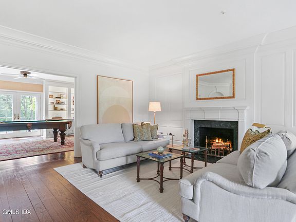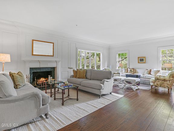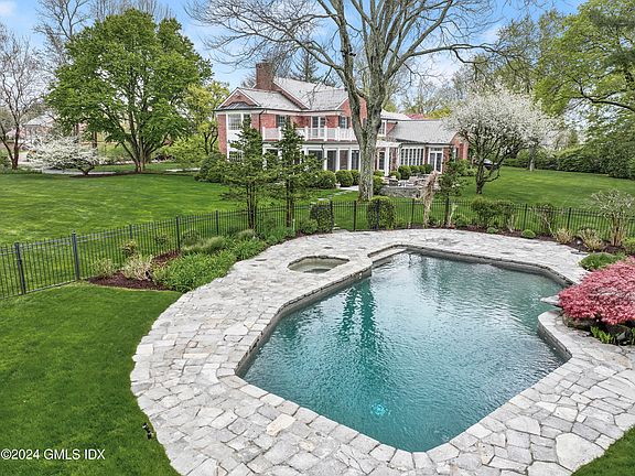 Two picture perfect level acres dotted with vibrant flowering trees and majestic mature plantings provide an idyllic backdrop for this elegant 5+ bedroom Colonial with stone terrace, pool & spa on a cul-de-sac in coveted mid country Classically appointed interior boasts sun-filled, generously-scaled rooms with rich wood floors. Granite-clad dine in kitchen opens in to family room with vaulted coffered ceiling, wet bar and fireplace; fireplaces in living and dining rooms, butler's pantry, game room, wood-paneled office with fireplace and three-season sun porch. Graceful curved staircase leads to the second floor highlighting primary suite with fireplace, deck and dressing room; four possibly 5 additional bedrooms and three baths. Attached two-car garage.& unfinished lower level