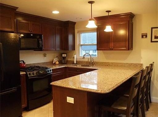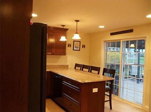 Totally remodeled home. New kitchen, cherry cabinets and granite counter tops.Sliders which lead to a new wrap around deck overlooking a 1/4 of acre level fenced in well manicured backyard.This home also features all hardwood floors, tile throughout and stone paved walkways and granite steps. Additional living space of 960 sq ft great for family room, play room or whatever suits your family, Great neighborhood. Convenient to major highways and NH amenities.