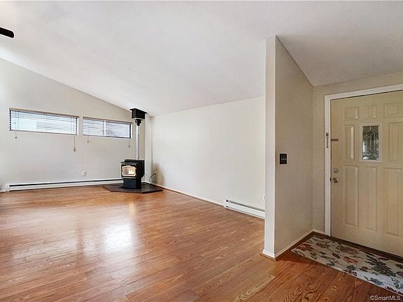 Fully updated MOVE IN READY One level living in this turn-key contemporary ranch with open floor plan, high ceilings, and center fireplace. Large Living Room has a Pellet Stove. Easy clean and durable laminate flooring throughout. Kitchen features an eat-in area. Washer and Dryer on main level. Master bedroom has a Master half bathroom. Two more ample sized bedrooms plus full hall bath. Two-car garage. Brand new A/C condenser. Large deck overlooking manageable back yard with shed. This is a must see property, excellent location in complex.