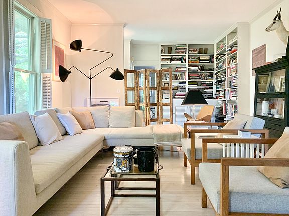 Charming cape cod home on one of the most desirable streets in the south village. Featured in Elle Decor Magazine. Enter into spacious living room with fireplace and built in original book shelves .Dining area with lots of natural light leading to kitchen with breakfast area and floor to ceiling windows, new appliances, and great pantry. Study with original bookcases and access to outdoors. Tv room with garden views and French doors leading to patio overlooking sculpture garden and pool. Serene main bedroom with full bath, luxurious soaking tub and custom designed fireplace. There is an original Dutch door leading to 20x50 pool. 2nd floor boosts two bedrooms, one full bath with beautiful skylight and original antique tub and sink. White bleached wooden floors throughout. Lushly landscaped grounds feature a 20 X 50 IGP with canopied patio to provide both total privacy and seclusion.