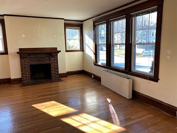 Available January 15! This apartment is lead compliant and located on the first floor of a well maintained two family home in the Brackett/Bishop elementary school buffer zone. Fresh paint, hardwood floors and updated windows in this unit. The entry foyer leads to a large living room with decorative fireplace. The dining room has built in hutch and opens to a heated sunroom. The eat in kitchen has a charming breakfast nook with built in seating (bench), and is applianced with a gas stove, refrigerator and disposal. There are washer/dryer hookups available. 3 bedrooms and 1 full bath. There is a rear enclosed porch, as well as an expansive side and back yard. Parking for 2 cars, including a garage space. Owner provides snow removal (tenants shovel out their parking spaces). 1 cat negotiable, NONSMOKERS ONLY. First/security/fee. Renter's insurance required.