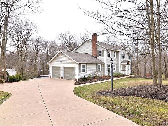 Min to Cranberry, RTES 228/19/65, I79 & I76, this custom-built, 2 story, 4 bed, 3.5 bath, 2 car is located on a .85 acre lot on quiet Cul de Sac in prestigious BRADFORD PARK SQUARE of Economy Boro. REAL OAK FLOOR wraps thru-out the Main, continuing to 2nd story, while the 2017 New Windows & complete interior updated paint make this home cheery, warm & MOVE-IN READY! MAIN: Kitchen has REAL OAK cabinetry w/ lots of storage, Corian® counters, tile backsplash & HUGE EAT-IN opens to 3 Seasons Rm & DECK overlooking yard/woodlands. Elegant Dining Rm w/ Tray & Crown adjoins Living Rm. The Family Rm has NEW Gas Fireplace. Half bath. UPSTAIRS: Master w/2019 COMPLETELY REMODELED En Suite Bath w/heated floor, Dual Vanity, ceramic/glass Shower. Bed2 W/I closet, Beds 3 & 4 are good-sized. FULL BATH. Laundry. LOWER LEVEL: Very large Game Rm w/ 2019 New Carpet, Kitchenette/Bar, FULL BATH, Plenty of storage & WALKS OUT to Patio. 2018 Front Porch/2017 ROOF & Windows/2014 Furnace/2011 A/C. 1 Yr Home WTY