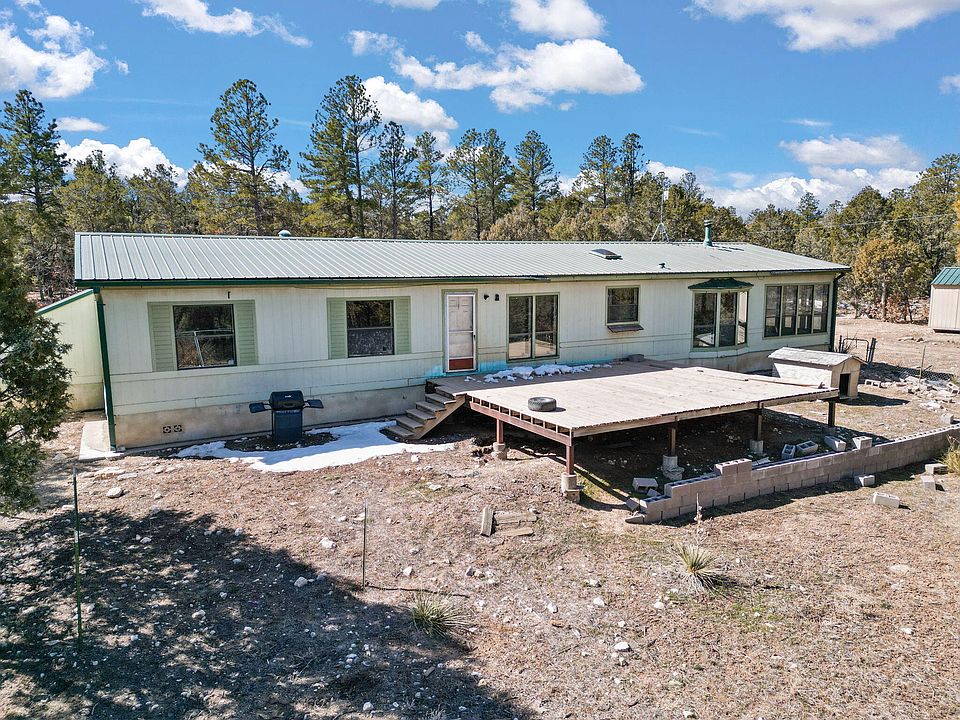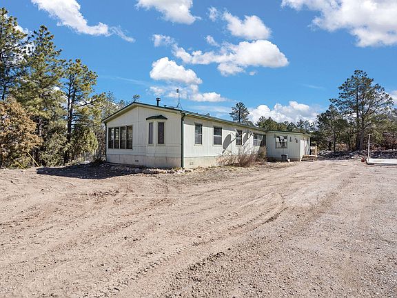 Seller offering a $3500 credit to Buyer. Sinks replaced in the primary bedroom. Own your little slice of heaven, tucked among the pines on 4 acres of land in Tijeras. This spacious manufactured home is flooded with natural light, open floor plan, a good sized mudroom with washer/dryer hookups. 4 bedrooms, 3 full baths. Kitchen offers ample countertops and cabinets, Stainless refrigerator, dishwasher and microwave, Breakfast nook looks out onto the Pines and a deck to enjoy the Tijeras air. There is a 32' x 32 ' foot concrete slab for your future garage or casita. Also included is a 16' x 24' ft Shed with a garage door. Shed is able to be moved to another location. There is a working well on the property. Newer Water Heater(2022) and Well Pump(2023). So much to offer with this property.