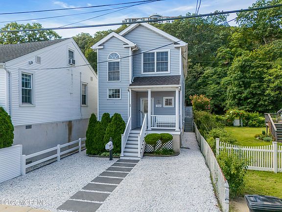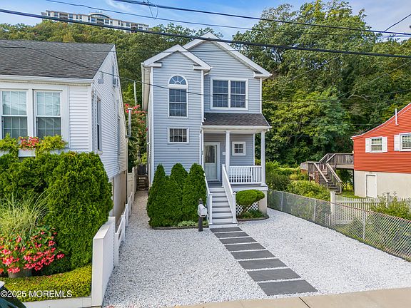 Welcome to 12 Locust Street, where modern upgrades meet coastal charm. This beautifully updated 3-bedroom, 2.5-bath home is designed for comfort and entertaining. Step inside to find ceramic tile throughout, radiant heat beneath the living and dining areas, and a double-sided gas fireplace that warms both the main living space and a private deck. The chef-inspired kitchen features granite countertops, a center island, decorative pendant lighting, and a coffee bar with built-in wine fridge. Nine-foot ceilings, stylish barn doors, new energy-efficient HVAC system, and tankless water heater create a refined yet functional environment. A Westinghouse generator adds peace of mind. Outdoor living is equally inviting with fresh hardscaping, a front yard designed for low-maintenance curb appeal, and a private deck with Weber grill. Upstairs, the primary suite opens to a balcony overlooking natural protected areas and the Henry Hudson Trail, while another bedroom offers views of the bay. Enjoy convenient access to local dining, parks (including a dog park), and the Sea Streak Ferry to New York.