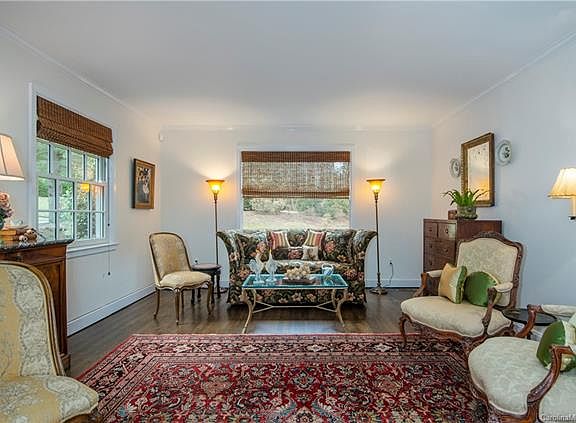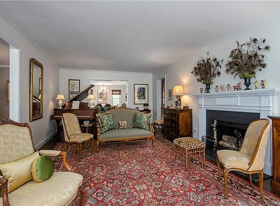 This traditional brick home will exceed your expectations with its spacious rooms and flowing floorplan. Perfectly designed for entertaining with a recently renovated kitchen which opens to dining area. Step into the living room with its rich hardwoods and wood-burning fireplace or the large adjacent sunroom with its glass doors for garden view. The 2 spacious bedrooms, each with their own bath, occupy a secluded wing of the house for privacy. Basement offers a bonus room and full bath (currently used as 3rd bedroom). Abundant storage with extra large 2 car garage. Situated on a corner lot with circular driveway and stone walls. Landscaped with minimal maintenance in mind. A pleasure to show. Currently rented, possession subject to lease.
