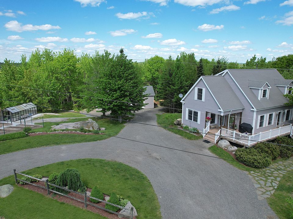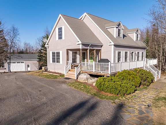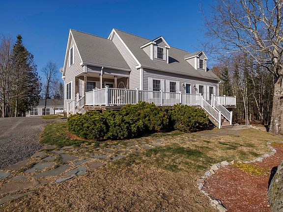 This 2750 sq ft 3 bedroom 2.5 bath home offers comfort and style with seasonal views of the mountains of Acadia, beautiful gardens and an incredible, heated workshop. The main floor starts out with a chef's dream kitchen, perfect for hosting. It boasts a custom made hutch and cabinets, an induction cook top, double wall ovens, a large kitchen island, top of the line appliances and Tibetan quartzite countertops. A breakfast nook is in the kitchen and formal dining room sits adjacent. The family room has plenty of sunlight along with a cozy pellet stove. On the main floor there is also a home office / flex space that could be another bedroom and a half bath with laundry. The front deck is the perfect place for grilling or stargazing. The primary bedroom is located on the second floor with a large walk-in closet and a spacious, custom bathroom. Two additional bedrooms and a full bath are also found on the second floor. The partially finished, daylight basement is a cozy secondary family room with a wood stove. It opens up to a secluded patio area where you can watch the snowfall while relaxing in the hot tub and a fire pit ready for laid back evenings throughout the year. The grounds are beautifully and naturally landscaped with massive granite boulders, perennial gardens, fenced-in raised beds and a greenhouse. On demand, automatic generator completes carefree comfortable living for this lovely home. Behind the house is an 1,800 sq ft, heated garage / studio for your boat, cars or any recreational vehicles or just a fantastic heated workshop with 12' ceilings and has built in work benches with over sized drawers. . Easy access to the Sunrise trail to walk, bike or off-road. The home is centrally located with Ellsworth, MDI / Acadia National Park or the Schoodic / Downeast Regions all close by. This is an ideal home for entertaining or enjoying the beauty and peace of nature. An additional building lot across the street is also available.