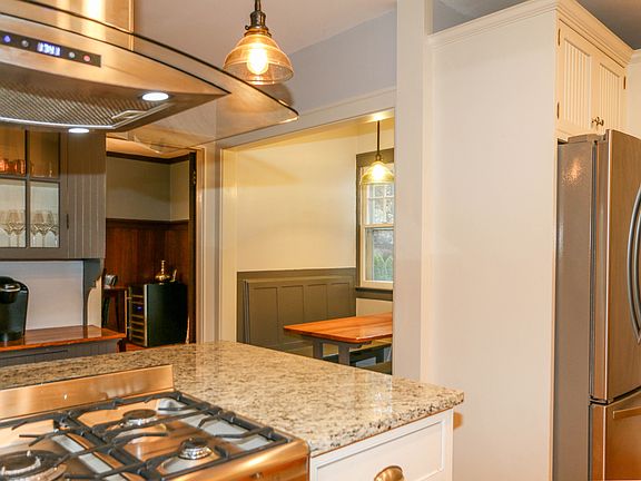 Adjacent to tree lined neighborhood & park, this stately tudor offers over 2700 square feet of living, 5 bedrooms, 3 full baths, French doors, hardwood floors throughout, tall ceilings & beautiful craftmanship of yesteryear. Large, impressive center hall features quarter sawn white oak wood recessed panel walls w/views of entire first floor from front to back living room, dining room, four season sunroom & renovated kitchen. Dining room mirrors foyer millwork, built in china/bar closet, double French doors & slider leading to exterior brick patio. Renovated kitchen features wood & glass front cabinetry, dining area, marble subway tile back splash, granite tops & new stainless steel appliances to remain for buyer's enjoyment. 2nd floor features 4 bedrooms including master suite w/brick fireplace & full bath. Renovated 2nd floor full bath features basketweave marble tile flooring & tile wainscot plus new chrome fixtures. 3rd floor features additional ensuite bedroom plus office/playroom.