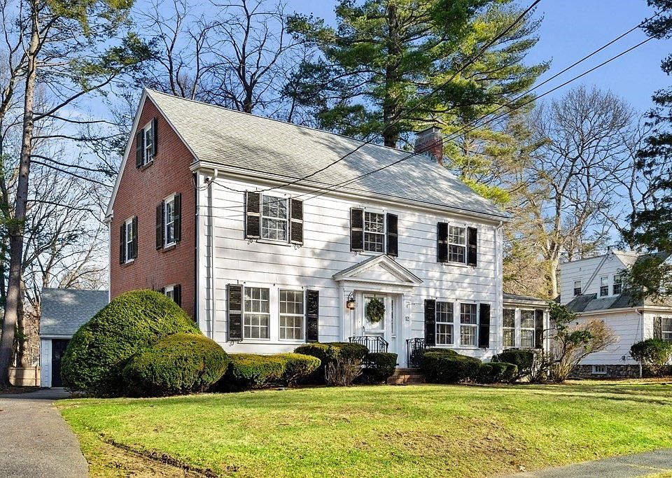 On a picturesque side street in the heart of the coveted Columbines neighborhood presides a quintessential center entrance colonial with beautiful brick sides. Built in 1929 and much admired over the years for it's distinctive seasonal awnings and classic facade this grand dame is situated on a flat .27acre parcel with a detached 2 bay garage. Inviting living areas with high ceilings and charming architectural elements delight, as do 4 spacious bedrooms and 3.5 bathrooms, including an en-suite in the primary bedroom. Large windows bestow generous natural light and provide beguiling views of the neighborhood and Blue Hills reservation in the distance. Potential for customization and expansion is boundless in this sought after location in close proximity to public and private schools, Turner's Pond, the Neponset River bike trail, trolley stops, restaurants and more. A must see for anyone hoping to make Milton home in 2024!