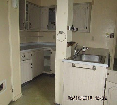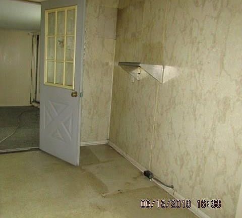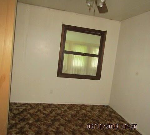 cute ranch with large front porch and attached garage. There is a family/gathering room off the kitchen. The house has 3 bedrooms and one bath. Some newer carpeting.