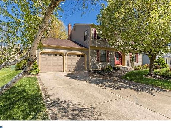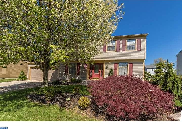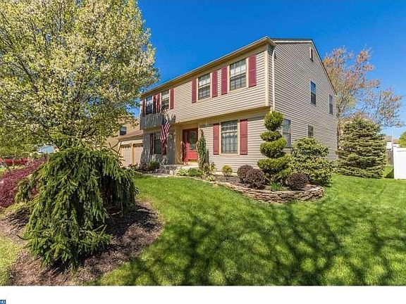 Charming center hall colonial, Arlington II model in desirable Willow Ridge. It has great curb appeal with professionally landscaped front yard, welcoming newer front door, as well as newer garage doors & openers. You'll be welcomed into the tiled entry foyer flanked on one side by the dining room with hardwood floor & the living room on the other side with neutral carpet & lots of natural light. Both rooms have crown molding & the DR has picture frame molding which continues up the stairway. A large family room with bay window & wood flooring leads into the eat-in galley kitchen with all SS appliances & slider which opens out to the 16'X20' deck. The powder room & large mud/laundry room complete the 1st floor. The 2nd floor has a large Master bedroom with upgraded full bath & lots of closet space. Three additional bedrooms are newly carpeted & have large closets. They share the hall bath which was recently upgraded in 2012 with tile, granite counter, & new fixtures. Other upgrades include newer HVAC & water heater, architectural roof, & vinyl siding, (2011). Don't forget this house is in a highly rated school district, close to shopping, restaurants & major highways for your easy commute to Philadelphia or the Jersey Shore. This is a great family home waiting for YOU to move in & make it your own.