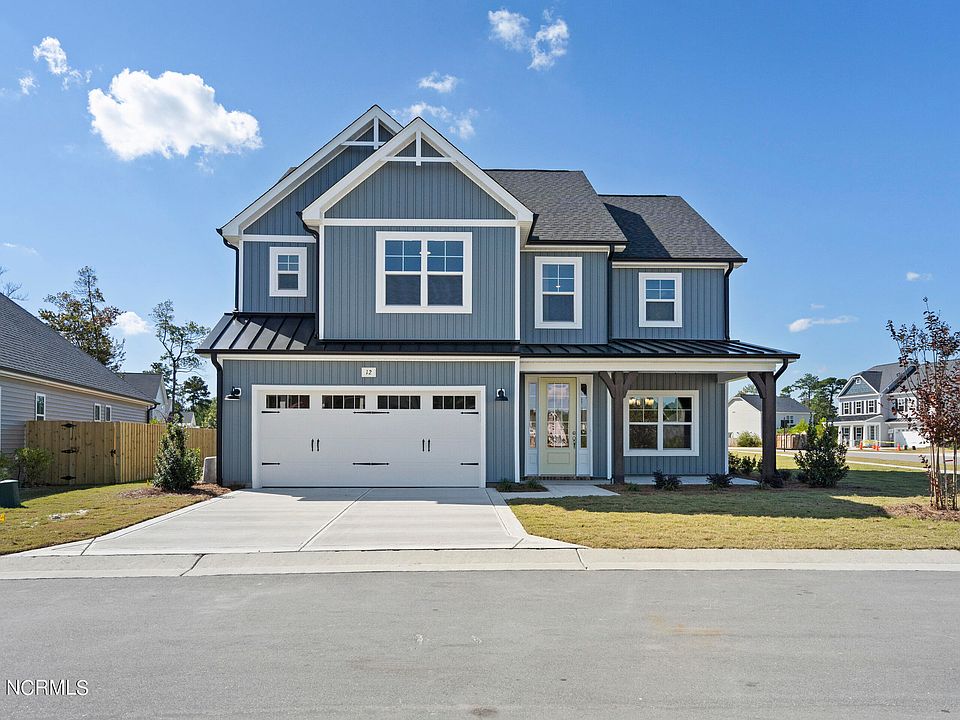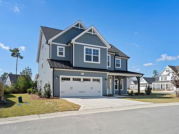 Welcome home to The Kendleton, built by Caviness & Cates in The Sanctuary at Forest Sound. This MOVE-IN READY 3-story home includes 5 bedrooms, 3.5 baths and plenty of extra space throughout. Walk inside and you will notice the elegant dining room with coffered ceilings and picture frame wainscoting. The kitchen with breakfast area and center island, will feature ''Carrara Cloud'' quartz countertops, herringbone backsplash in ''stormy mist'', timeless white shaker cabinets, walk-in pantry with wood shelving, butler pantry, and stainless-steel appliances, including a natural gas range, wall oven, built-in microwave and range hood. Flowing seamlessly from the kitchen, is the great room with natural gas fireplace and Carolina Room that provides easy access to the covered porch with grill patio overlooking the fully fenced private backyard. Completing the first floor is a half bath and built-in coat station making the perfect landing zone for backpacks and shoes in the garage entry. The second floor features the primary suite with tray ceiling and crown molding, along with 2 large walk-in closets with wood shelving. The primary bathroom includes a tile shower with bench, double vanities, linen closet and private water closet. You will find 3 additional spacious bedrooms, the laundry room and a full bath with double vanity on the second floor. Be sure not to miss the 3rd floor! The 5th bedroom, along with a full bath and bonus room can be found here, making it the perfect retreat for guests! Additional features in this home include LVP flooring and crown molding throughout the first floor living areas, oak tread stairs, epoxy garage floor, tankless natural gas hot water heater and gas HVAC. The Sanctuary at Forest Sound is centrally located in the heart of Hampstead. 15 minutes to Wilmington or Surf City/Topsail and just 1 mile off the Intracoastal Waterway. Future proposed amenity includes a boat storage area. Home is under construction.
