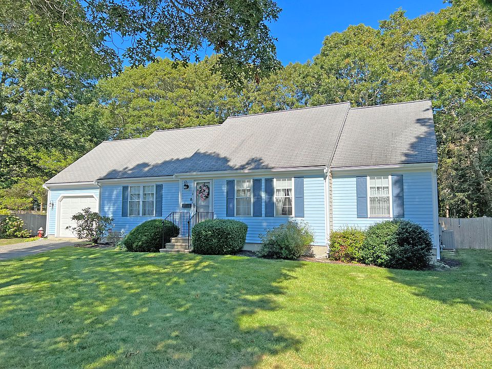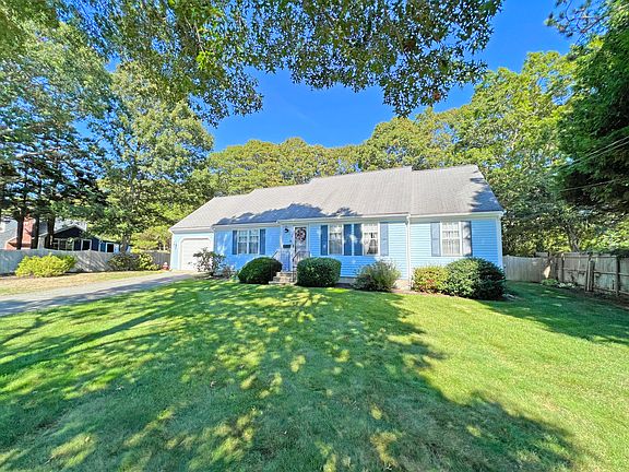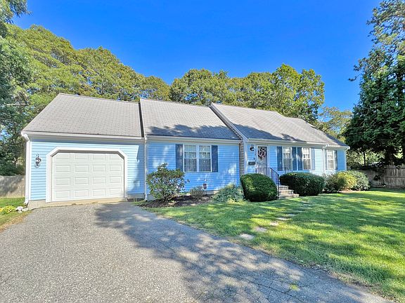 This wonderful newer 3 bedroom, 2 full bath ranch with attached garage is just 8 homes away from a wonderful sandy swimming beach on Long Pond and only about a mile to the ocean beaches on Nantucket Sound. Just a stone's throw to shops, restaurants and conveniences as well. You'll love the spacious beamed cathedral ceiling living room with gas fireplace, sunny kitchen and dining area with sliders to the spacious deck, 3 bedrooms include the master suite with private bath plus another full bath with 1st floor laundry off the hall. There's an attached garage with entry right into the kitchen, full dry basement and lots more. Nicely landscaped level lot outside any flood zone. Gas heat, central A/C, hardwood floors with nice wall to wall carpet in the bedrooms all nicely maintained and ready for your rear round or summer enjoyment.
