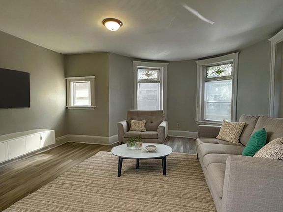 This charming 2-bedroom, 1-bathroom home features a spacious living room and kitchen, perfect for both relaxation and entertaining. The kitchen is equipped with modern stainless steel appliances, offering a sleek and functional cooking space. Enjoy year-round comfort with central air conditioning, ensuring a pleasant atmosphere throughout. With ample natural light and a thoughtfully designed layout, this property is ideal for comfortable living. Tenants are responsible Gas and electric. Laundry in the basement of building! Owner is offering a half month off for December if moved in by December 1!