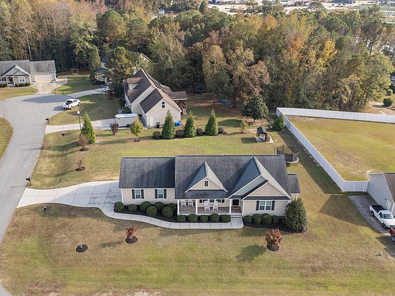 Welcome to 12 Macara Ct in Angier! This charming 3-bedroom, 2-bath home is situated on a spacious corner lot near the popular McGee's Crossroads area. Step inside to discover an inviting open floor plan with soaring vaulted ceilings, perfect for comfortable living and entertaining. The living area flows seamlessly into a bright kitchen and dining space, ideal for gatherings. The primary suite offers a private retreat, while two additional bedrooms provide flexibility for family or guests. Step outside to enjoy the large deck, perfect for relaxing or hosting BBQs. With ample yard space, this home is ready for outdoor fun and gardening. Dog kennel and pavers under it do not convey. Propane tank does not convey. Don't miss your chance to make this gem your own!