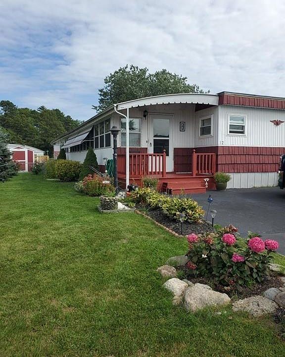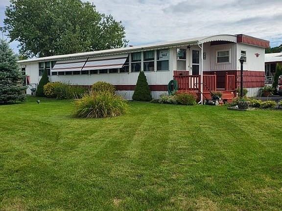 Well maintained, double wide mobile home featuring newer roof and windows, a brand new storage shed with an additional room for storage or can be used for a work shop. Two good sized bedrooms, eat in kitchen and private bar located in the sun room which is spacious and a great place to entertain. Nicely landscaped corner lot is partially fenced in. This home is located in a 55+ community, close to highway but still very private and quiet. Park fee $519 per month. Don't miss out. Call Now.