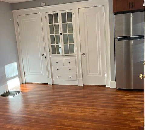 Bright and sunny one bedroom in quiet Prospect Hill neighborhood. Newly renovated kitchen with quartz countertops, Whirlpool stainless steel appliance package including gas range, micro wave, dishwasher, disposal, and refrigerator. New tile bath with linen closet, new windows and mini blinds, hardwood floors, plenty of closets, LED lighting and living room ceiling fan. Freshly painted, lockable basement storage, coin laundry, two car off street parking, private deck, easy walk to downtown, beaches, and train stations. One years lease, resident pays utilities including gas heat and hot water, and electric. Security Deposit, Last Months Rent Deposit due at lease signing. Non smokers and no pets please.
