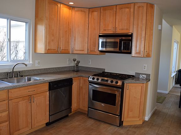 Bright and Sunny 3 Bedroom, 2.1 Bath corner unit in the Meadows. Conveniently located to the center of town. First floor features updated kitchen with stainless steel appliances with plenty of maple cabinets and recesses lighting. Nice size family and living room with woodburning fireplace and skylights, make this home nice and bright with plenty of sunlight. Beautiful deck off the dining room sliders make it very convenient to enjoy a summer bbq. Upstairs features a nice size Master Bedroom with walk in closet and vaulted ceilings with attached private bath. 2 other Bedrooms with an additional full bath, and laundry room complete the top level. All new carpets and kitchen appliances redone in May 2017.