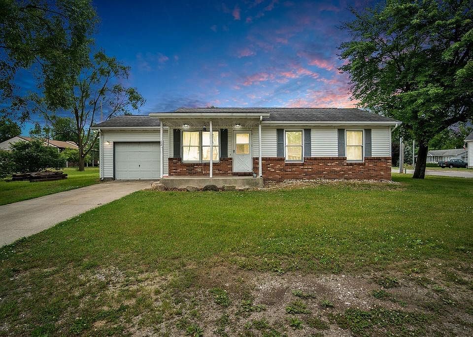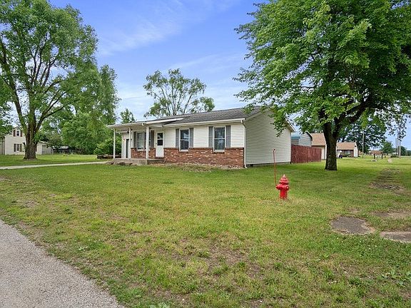 Looking to move to an adorable small town in a beautiful home? Look no further! This 3 bed/1 bath with over 1000 sq ft home features many new upgrades, including brand NEW pole barn in back(18x20), concrete patio, LARGE deck, gorgeous hardwood floors throughout the whole house, and an updated bathroom. Living room and formal dining room features open concept. Back yard is great for entertainment with the privacy fence! Garage is also finished and insulated!