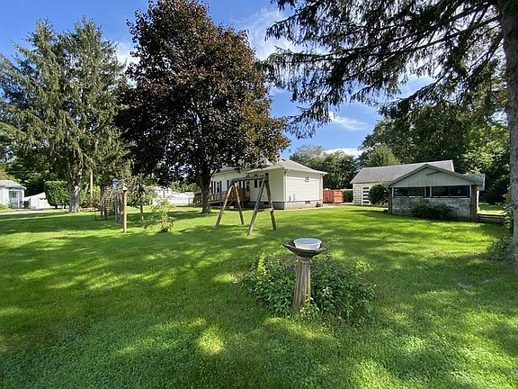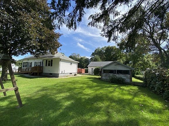 Adorable and cozy with one of the loveliest lots I've seen! An expanse of flat green space extends on both sides of the house right up to the stone wall & cart road that marks the far boundary line. Possible added building lot; buyer to verify. Watch the birds on the blueberry bushes from your enclosed front porch with bead board wainscotting and 9 oversized windows. The living room has nice wood floors and like the rest of the home, the oak woodwork on the trim and door frames, is original. Nice dining room w/ built in hitch Two good-sized bedrooms, one of which affords a beautiful view of the side yard. The kitchen has a fabulous pantry with loads of storage and added prep space. Full bath is large with an oversized linen closet and tile flooring. JUST the right size for first timers or downsizers (all one level living - Laundry in the entryway/mudroom). You cannot find a home this adorable with land like this AND a two-car garage for this price Anywhere, so don't wait. Call now!