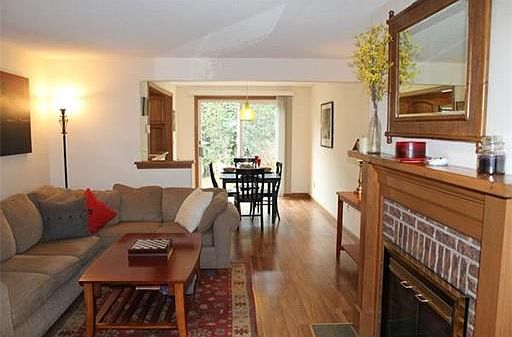 Spacious well-kept Townhouse in sought after area ...newer carpeting, furnace , Living room with Fireplace.Open kitchen/dining area for ease of entertaining.Kitchen has granite counters and Italian tile flooring.Two king size bedroooms accomodates all your furniture and have ample closets.Master bath with shower. Full Basement is mostly finished and adds extra living space ... just needs carpeting..lots of built ins,cedar closet, laundry and more storage..Sliders to patio area for grilling and enjoying nature....close to all amenities, highway , shopping etc