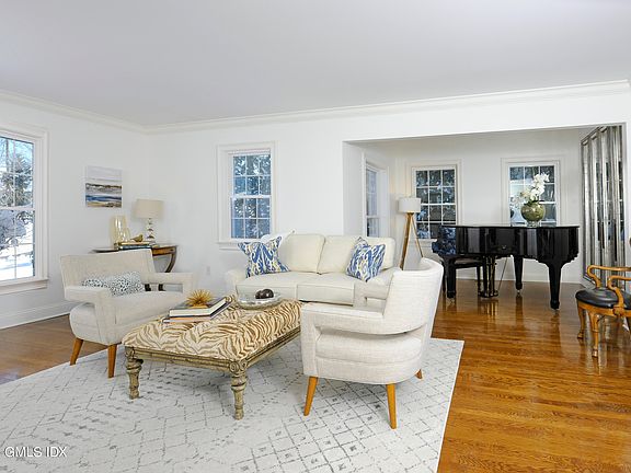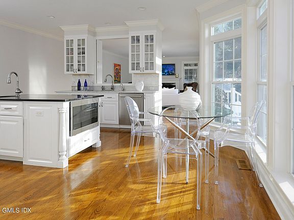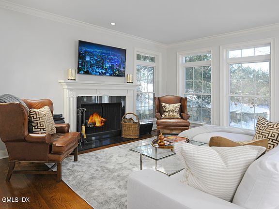 Beautifully renovated in 2006, this 4-bedroom Cape Cod style home offers a quiet respite and glorious sunsets on .3 level acre in a desirable Cos Cob neighborhood. Steps from Loughlin Park, playground, tennis & paddle courts and a short walk to the local village and trains. Home boasts hardwood floors, well scaled rooms infused with natural light and views of the back yard and sunsets. A marble clad, eat-in kitchen opens to family room with fireplace and French doors to stone terrace, backyard; a living room with fireplace, formal dining room, home office, and laundry. The second floor offers a spacious master suite with cottage shutters, walk-in closet and updated bath; large ensuite bedroom, two bedrooms and full bath. Lower level features play/family room, gym and attached two-car gara