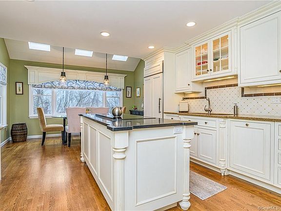 Maplewood Estates. Gracious Contemporary Colonial in Danbury???s convenient Westside. Main level features hardwood floors, detailed millwork, and open floor plan. Gourmet kitchen with high-end appliances including Subzero refrigerator and 72 bottle wine fridge, Dacor cooktop and built in double oven with convection option. Beautiful maple cabinets highlighted by granite counters and custom marble backsplash with imported bronze detail. Large dining area bathed in natural light from skylights. Family room with vaulted ceilings and ample windows. Formal dining room and living room with bonus study for stay at home professionals, complete the first level. Spacious master bedroom suite features tray ceilings, custom wardrobes, walk in closet and sitting area. En-suite bathroom with air jacuzzi tub, steam shower, dual vanity, heated floors and seated make-up vanity. Partially finished lower level with full bath and walk-out; ideal for in-law or Au Pair space. Outdoor sit back on the generously sized deck, great for entertaining, and enjoy the peaceful surrounds. Other great features and updates include: New roof (2014) with ice and water guard membrane, exterior paint and stained (2014), ADS garage doors (2014), new 2nd level ac system (2011), State EXP80 hybrid heat pump and water heater Bally cast iron boiler. All this AND in a great location; near i84, Danbury Mall, west-side dining and Richter Golf Club.