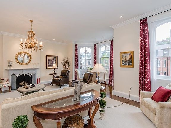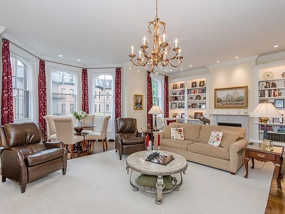 Rare Penthouse opportunity on the first block of Marlborough Street. This duplex home with spacious private roof deck was meticulously renovated by Payne Bouchier in 2012 and combines elegant architectural details with updated finishes. The main living level features the front-facing, full-width living room, the custom kitchen with high-end appliances and breakfast bar that opens to the formal dining / family room, & the study with extensive built-ins. Upstairs, three bedrooms include the oversized master with fireplaced sitting area, expansive walk-in closet storage, & five-piece marble bath. Additional features include the rooftop head house with wet bar and easy access to the private deck, gleaming hardwood floors and impressive ceiling heights throughout the interior, new AC and alarm systems & an updated sound system. Located steps from Boston's famed Public Garden and Newbury Street, this gracious property also includes additional storage and deeded parking for one car.