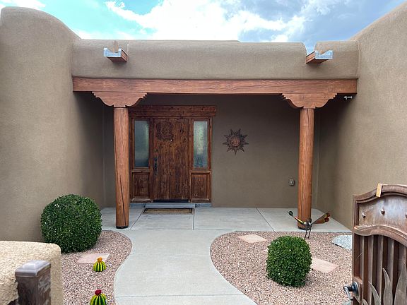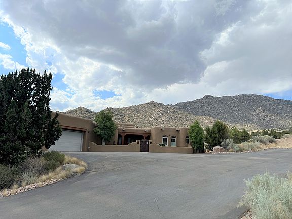 Truly amazing custom home on 5 acres just minutes from Tramway and Central. Single story, 3/br, 2.5/ba, 3 car garage (2/car PLUS RV bay with electric and dump - measures just over 1800 sq.ft.). Greatroom concept w/10 ft ceiling, cozy wood burning stove and travertine tile. Super nice kitchen with granite countertops and SS appliances. Large room sizes. Upgrades galore. Pamper your pets too with their own air conditioned area w/doggie door leading to dog run. Tankless HWH. Refrigerated Air. Large professionally landscaped areas to enjoy the great outdoors and the Views are simply amazing.