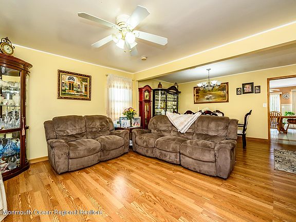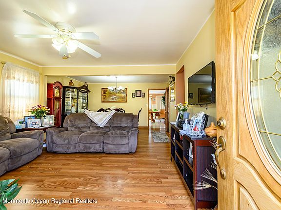 Welcome home! This charming 3 Bed 2 Ranch in desirable Jackson is the perfect place to settle & grow, just awaiting your personal touch! Bright & airy open layout makes for easy entertaining, complete w/a spacious Living Rm & elegant Formal Dining rm. Gleaming HW flrs & plenty of natural light extend all through! Eat-in-Kitchen is huge! Plenty of cabinet & Pantry storage, ceramic flrs + backsplash, ample Dinette space, rec lights & glass slider to the Patio for easy outdoor dining. Down the hall, the lovely main bath + 3 generously sized Bedrooms w/ample closets & lighted ceiling fans. Master Suite has it's own separate bath entrance, too! 2nd Full Bath w/convenient Laundry facilities complete the interior of this gem. Big Backyard holds a sizable Patio, 3 Storage Sheds & plenty of space