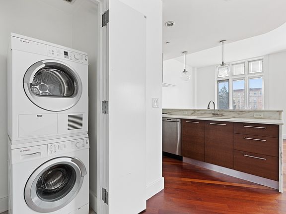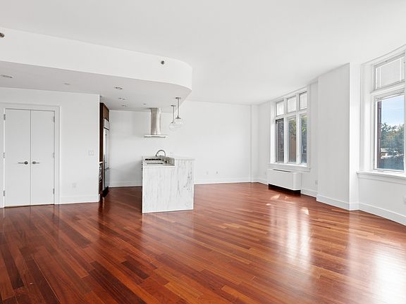 NO FEE Welcome to your new home, a corner apartment boasting a grand sun-filled living room with high ceilings , extra large windows and curving walls. The kitchen has a large marble counter top, stainless steel appliances, and customcabinetry to create the perfect cooking and entertaining hub. Your generously sized master bedroom with a customized walk-in closet , and ensuite bathroom is an oasis in itself. The second bedroom an be used as a home office or as second large bedroom. Images show both options. Two full marble bathrooms, one with a deep soaking tub and the other one with a two-headed rain shower, a private balcony, a spacious foyer and a laundry/storage room complete this Southeast facing apartment. As a resident of this luxury building, you will have access to a vast menu of amenities. A sun terrace and private garden provide beautiful outdoor retreats, while a fitness room provides the right equipment for working out. The Oakland is situated in proximity to McCarren and McGolrick Parks.